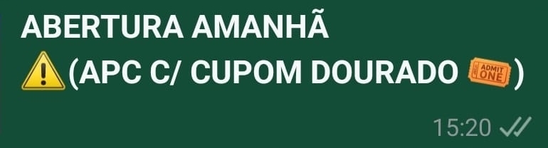 O Horário de abertura do perfume com Cupom Dourado será a partir das 20h.